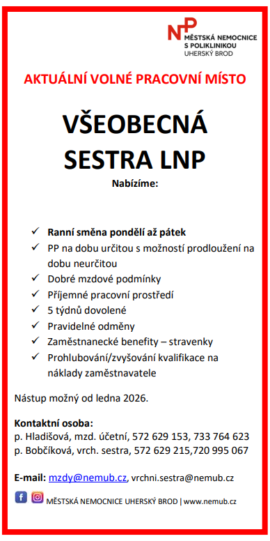 HLEDÁME VŠEOBECNOU SESTRU NA LNP.
