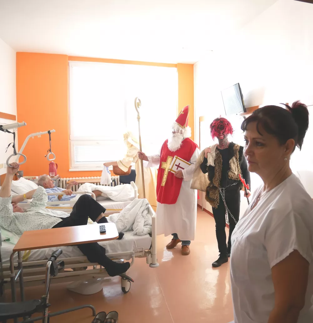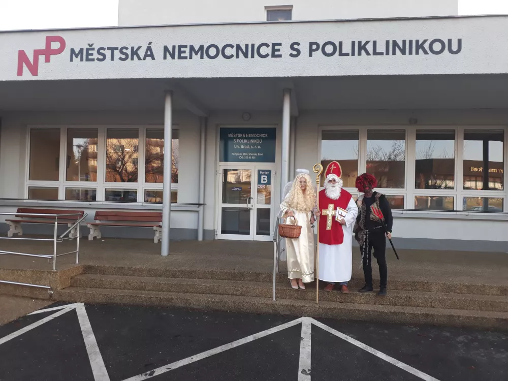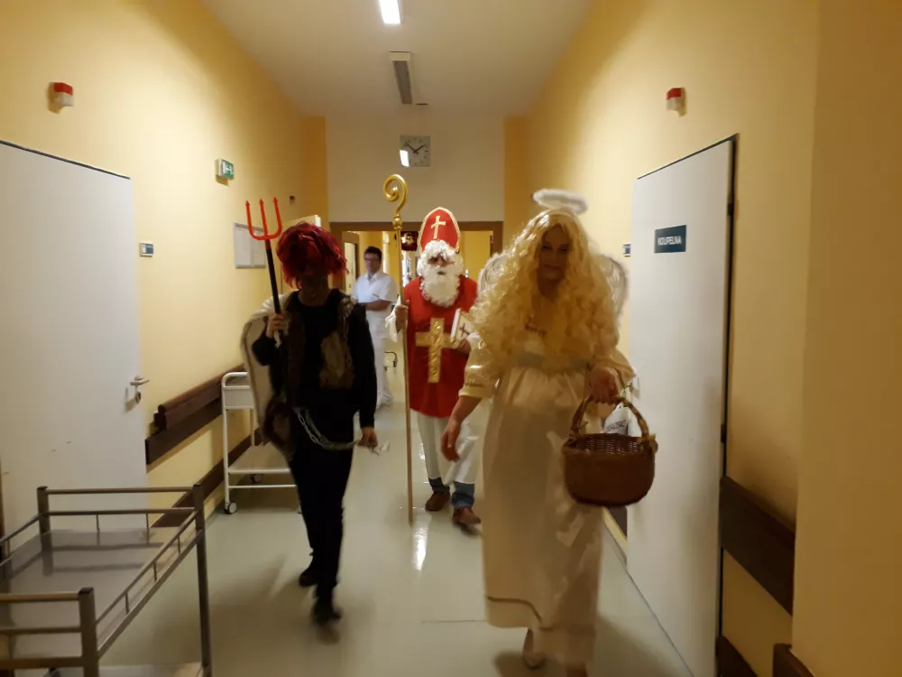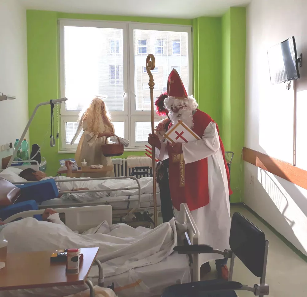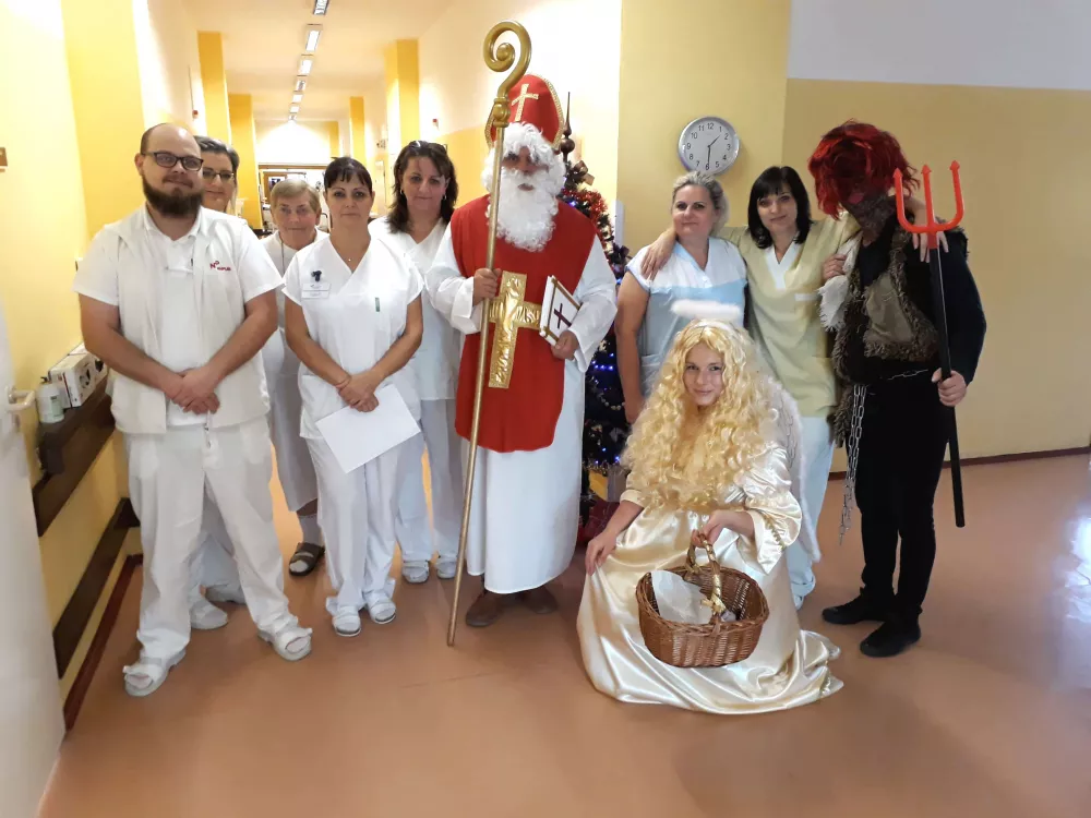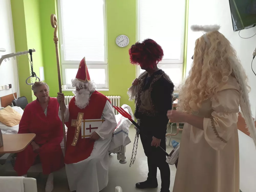 Mikuláš, anděl a čert si krátce přátelsky popovídali s každým naším pacientem a následně jej obdarovali dárkovým balíčkem plným dobrot. Za záslužnou práci nezapomněla družina obdarovat něčím sladkým také zaměstnance všech oddělení.
