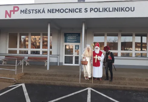 Jak už to již několik let bývá v naší nemocnici zvykem, zavítala tato trojice jak na všechna naše oddělení následné péče, tak i do ambulance rehabilitace. Tentokrát se však k cestě napříč odděleními přidala a pomocnou ruku podala i naše nová ředitelka nemocnice Mgr. Aneta Prná.