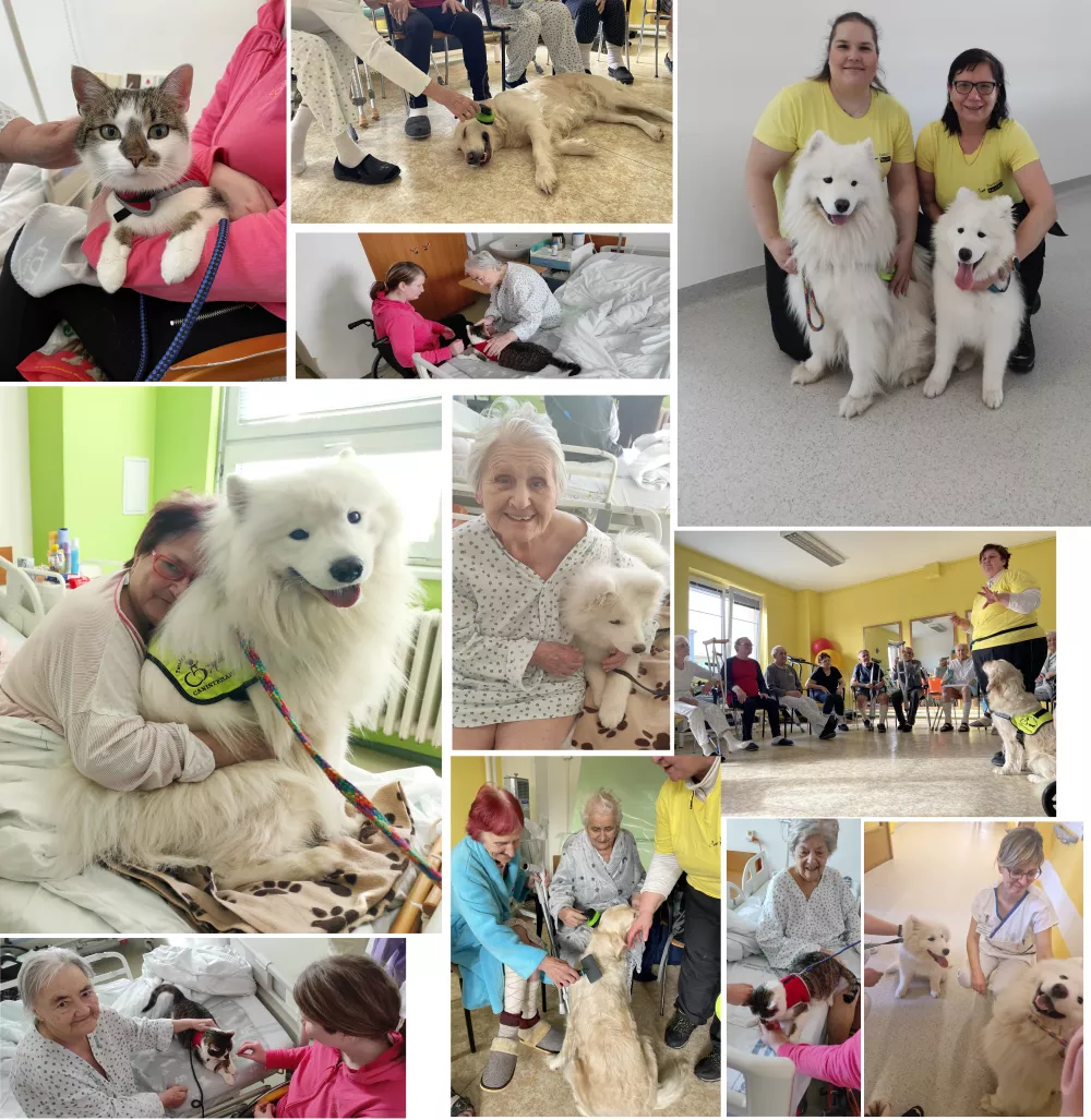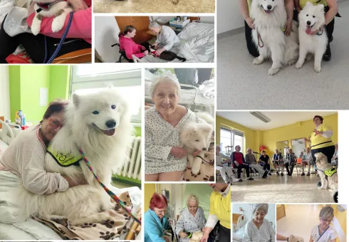 Roztomilí a huňatí pejsci plemene Samojed a kocourek Macík navštívili přímo pokoje pacientů a s některými z nich strávili chvilku na lůžku.