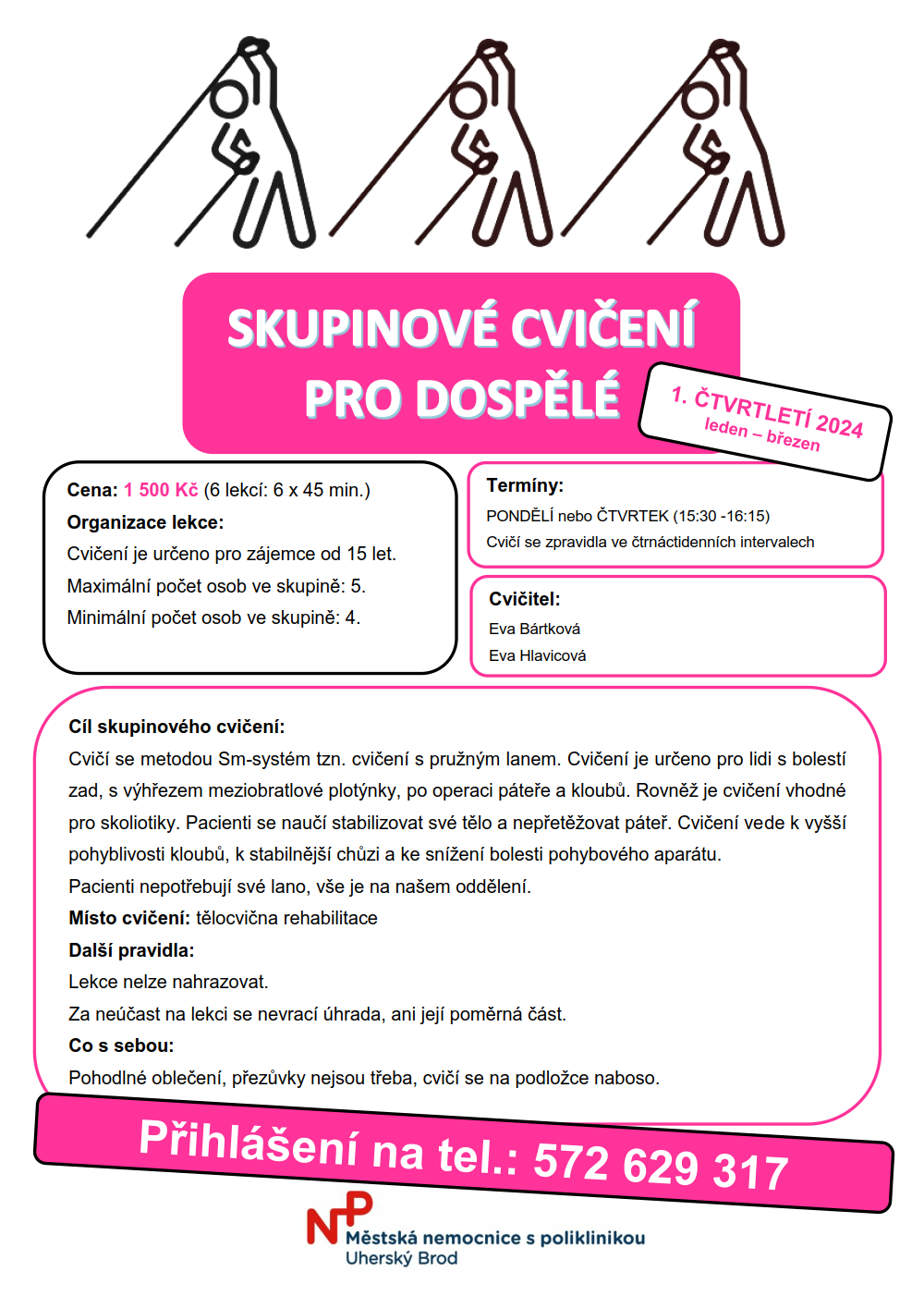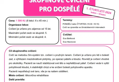 NABÍDKA SKUPINOVÝCH CVIČENÍ NA I. ČTVRTLETÍ