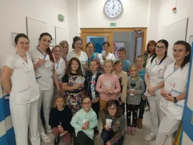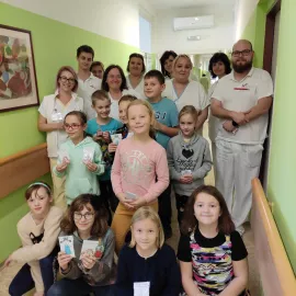 Naši nemocnici navštívily děti ze školní družiny ZŠ a MŠ Uh. Brod – Újezdec, s paní vychovatelkou Bronislavou Bujáčkovou, aby ke Dni laskavosti, který byl v neděli 13.11.2022, předaly dárečky, které samy vyrobily, jako poděkování našim zaměstnancům za práci a za to, jak se starají o nemocné lidi.