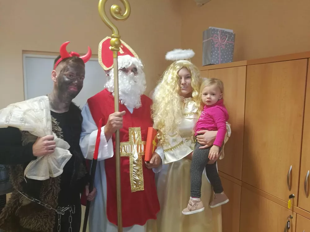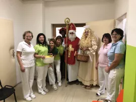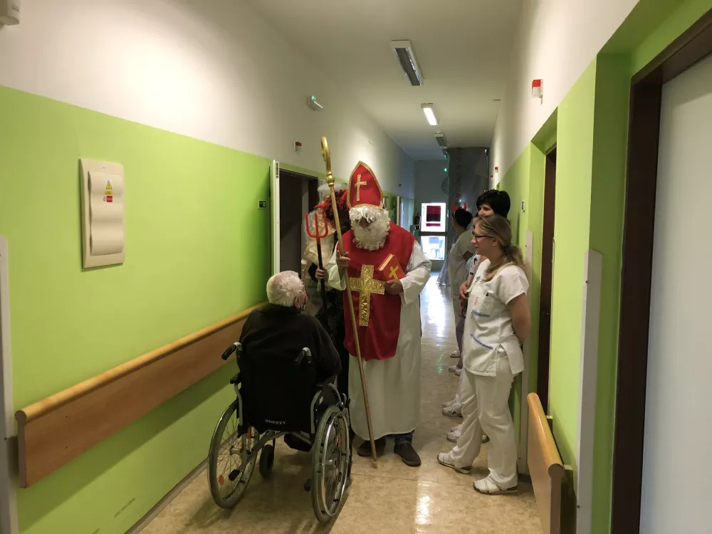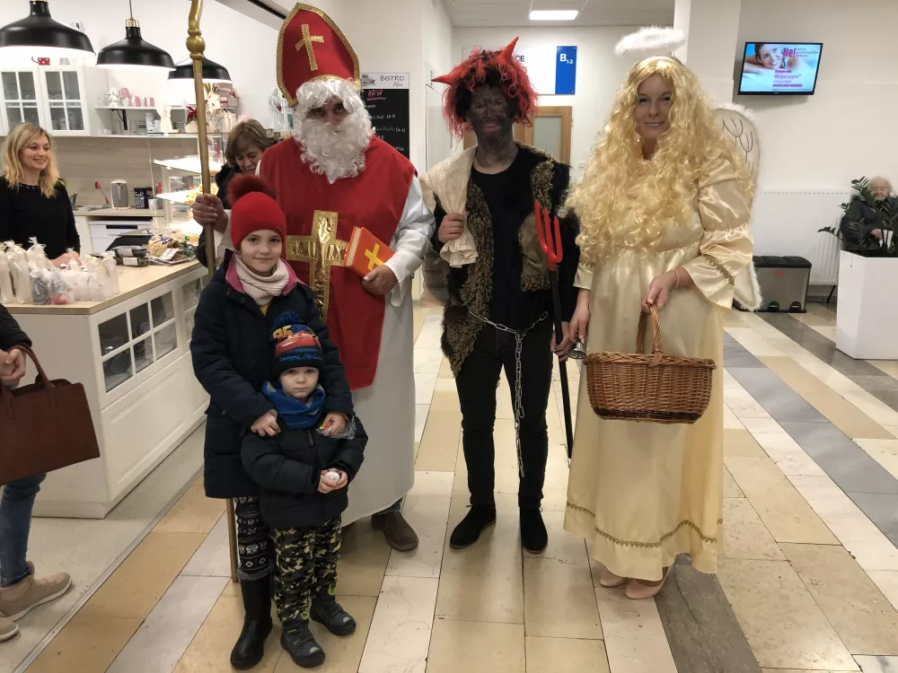 Po obdarování pacientů a zaměstnanců léčebny následné péče, družina zamířila na rehabilitační oddělení. Cestou potkali i malé návštěvníky, kteří jim zazpívali krásnou písničku, za kterou dostali od hodného Mikuláše sladkosti.