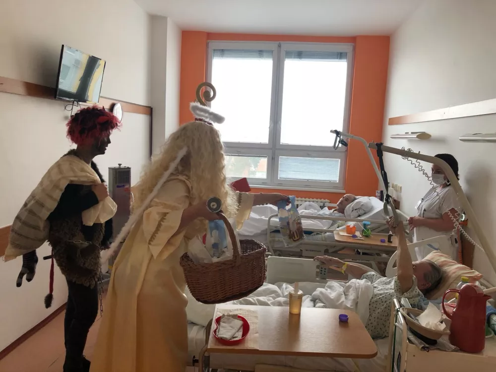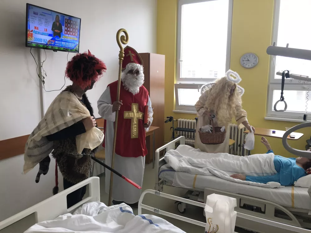 Dnes, úderem 10. hodiny dopolední, zavítal Mikuláš s andělem a čertem do naší nemocnice.