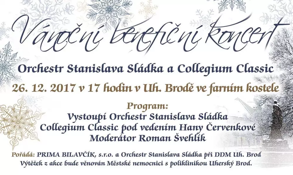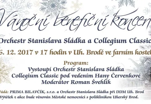 Zveme Vás na vánoční benefiční koncert, který se koná 26.12.2017 od 17:00 hodin ve farním kostele v Uherském Brodě. Vystoupí Orchestr Stanislava Sládka a Collegium Classic.