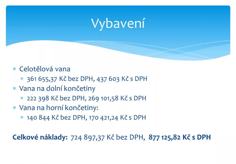 Cena za vybavení (3 kusy van): 877 125 Kč s DPH
