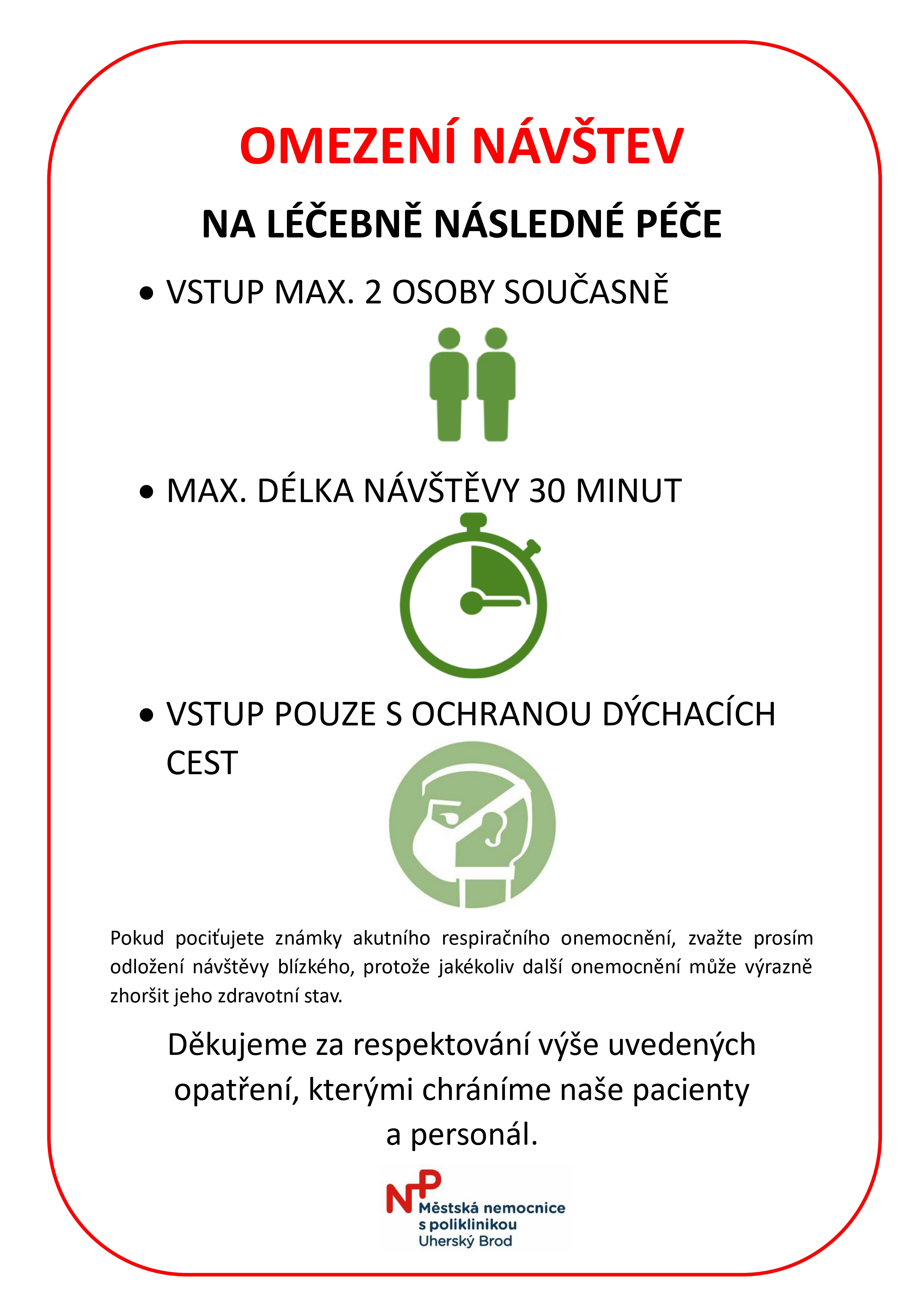 Z důvodu výskytu respiračních onemocnění jsou návštěvy na 5. oddělení následné péče ZAKÁZÁNY!
